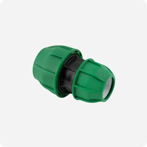 Verloopkoppeling voor het aansluiten van 25 mm op 16 mm PE-leidingen.